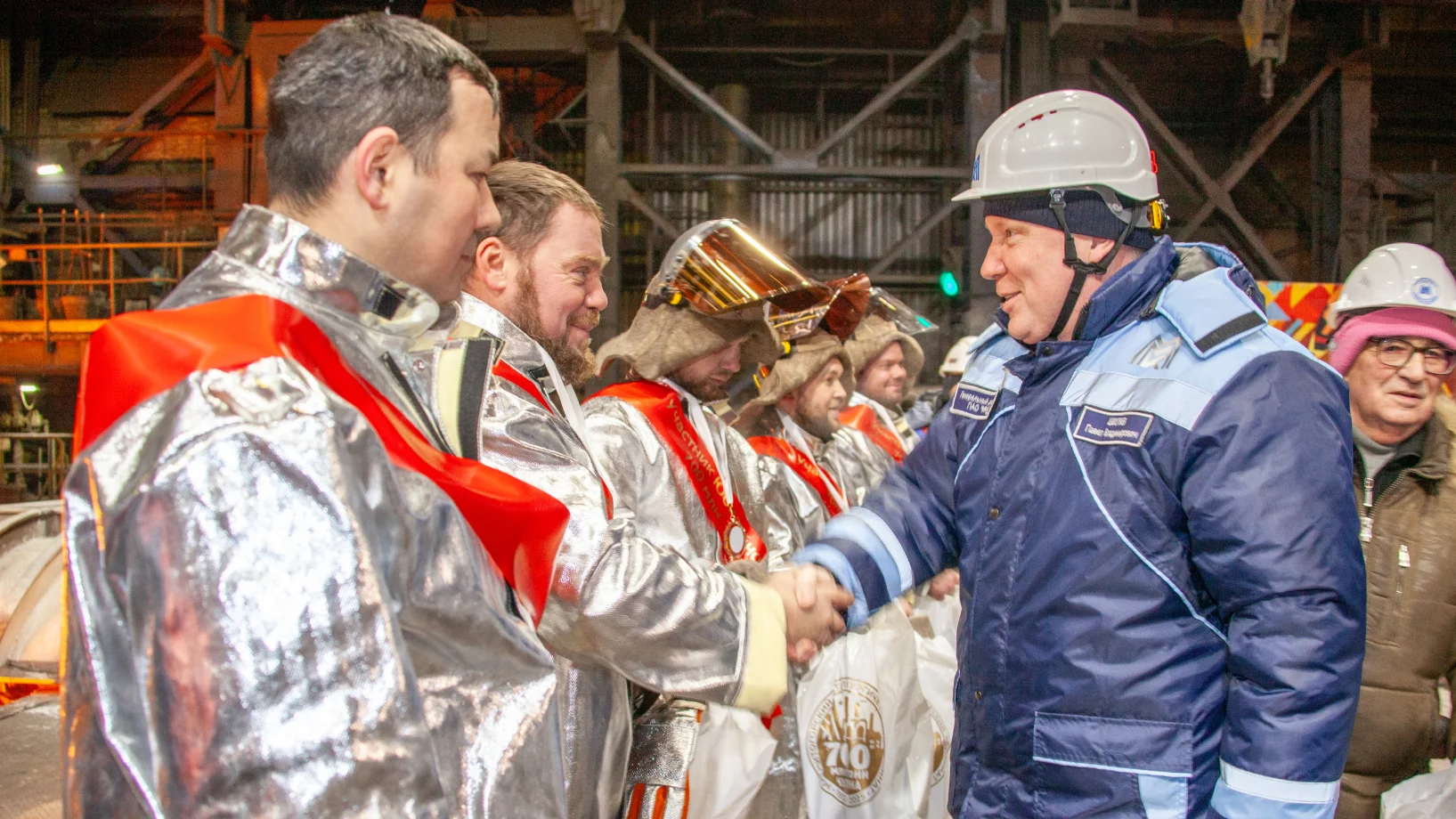 Уточняется, что юбилейная тонна выплавлена с начала пуска первой доменной печи — в 1932 году. По случаю выпуска юбилейной тонны на литейном дворе доменной печи № 2 доменщиков поздравил генеральный директор ПАО «ММК» Павел Шиляев и другие руководители ММК.