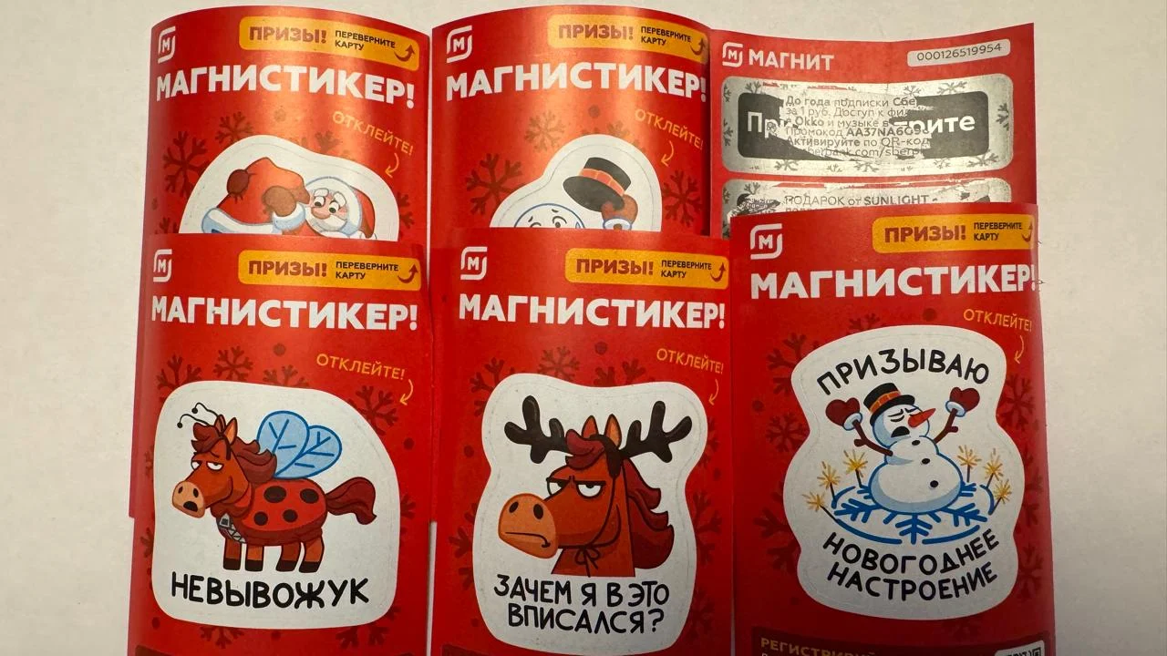 Акция «Магнистикер» объявлена на период с 03.12.25 по 14.01.2026 в виде моментальных призов от сети супермаркетов МАГНИТ за каждые 600 рублей в чеке. Кроме SUNLIGHT призы выдаются от брендов SOKOLOV, Okko, Иви, Кинопоиск, START, СберПрайм, PREMIER.
