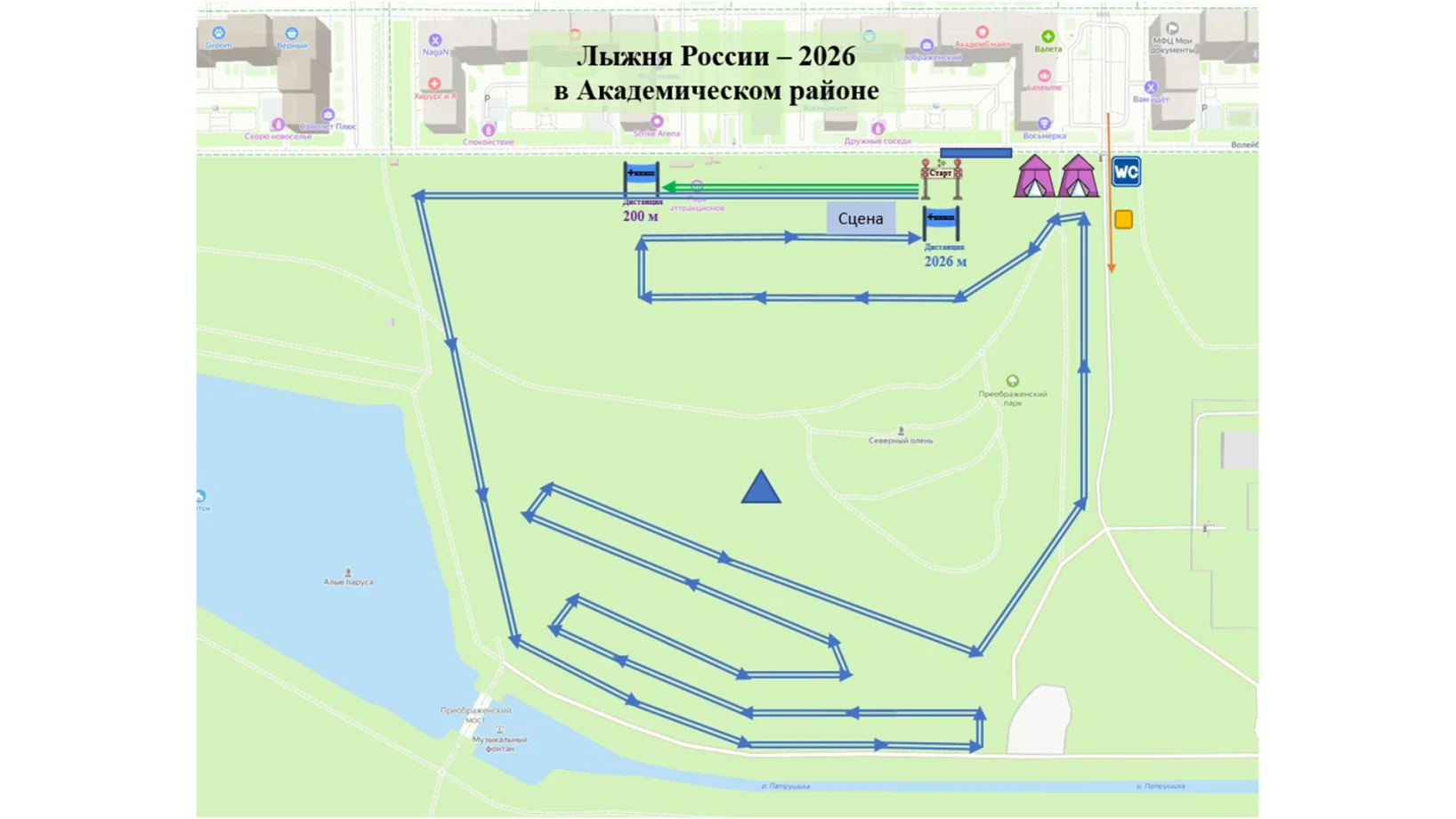 Длина трассы для забега составит символические 2026 м. Для самых маленьких лыжников будет отдельная дистанция в 200 м.