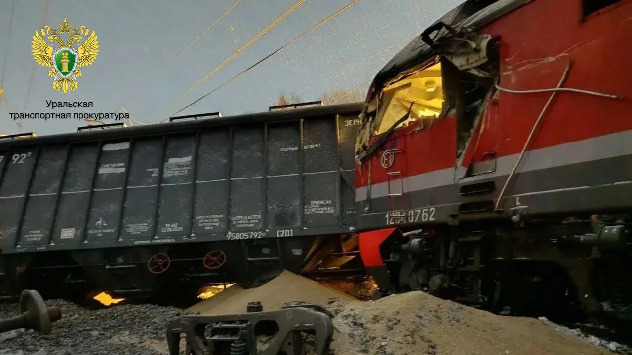 УрБК, Екатеринбург, 02.03.2026. На участке железной дороги между станциями «Пермь 2» и «Шаля» Свердловской железной дороги (СвЖД) произошел сход десяти вагонов грузового поезда. Один из сошедших вагонов, перевозивший зерно, задел локомотив технического электропоезда, который также сошел с рельсов, сообщила Свердловская железная дорога (СвЖД) в своем телеграм-канале.