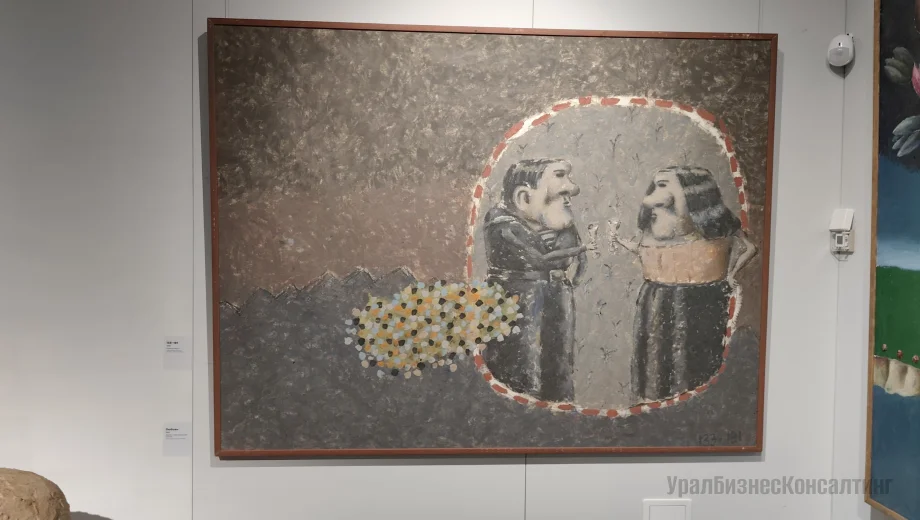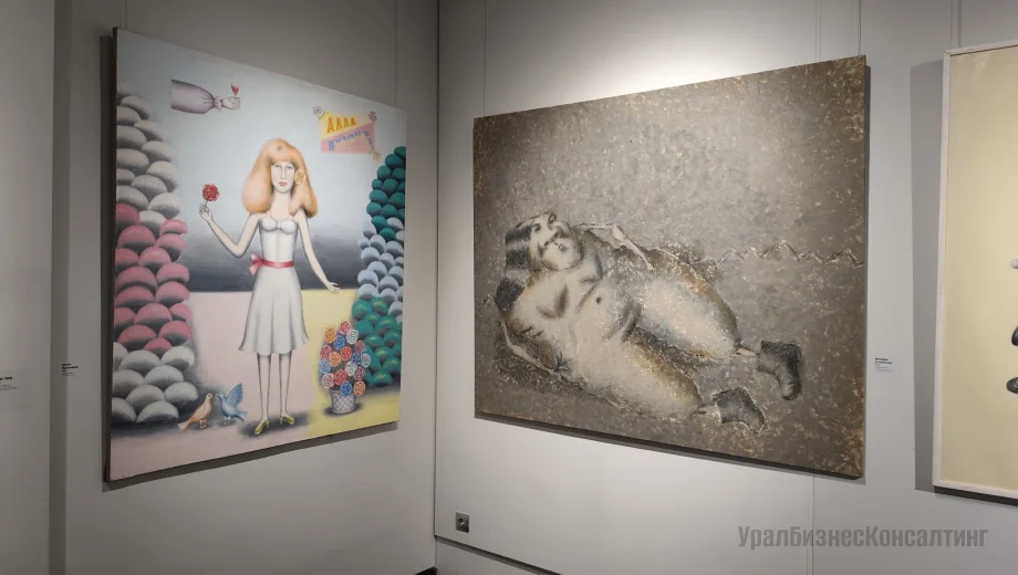 В экспозиции Большого выставочного зала гости музея могут увидеть 128 живописных и скульптурных произведений автора из его мастерской и частных коллекций Москвы, Санкт-Петербурга и Воронежа, дополненные характерным произведением из собрания ЕМИИ («Красавица с кошкой», 1984).