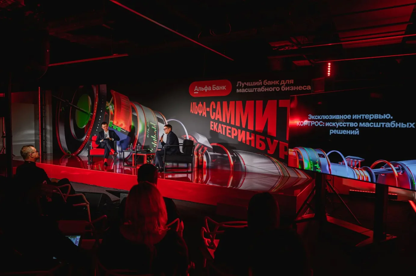 УрБК, Екатеринбург, 25.03.2026. Одной из ключевых сессий деловой программы Альфа-Саммита в Екатеринбурге стало эксклюзивное интервью генерального директора ГК «КОРТРОС». В рамках разговора со старшим вице-президентом, руководителем департамента по работе с крупными корпоративными клиентами Альфа-Банка Денисом Кутасовым Станислав Киселев рассказал о пути развития девелопмента, а также о стратегии управления командой.