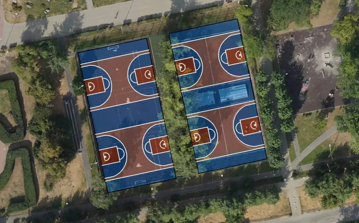 В результате было принято решение увеличить количество площадок для баскетбола на территории с двух до четырех за счет переоборудования соседнего мини-футбольного поля. Размер каждой новой спортивной зоны составит 22 на 18 м. Здесь установят шесть трибун для зрителей и восемь колец, у которых нанесут разметку для баскетбола. Площадки будут ограждены, освещены и защищены от образования луж.