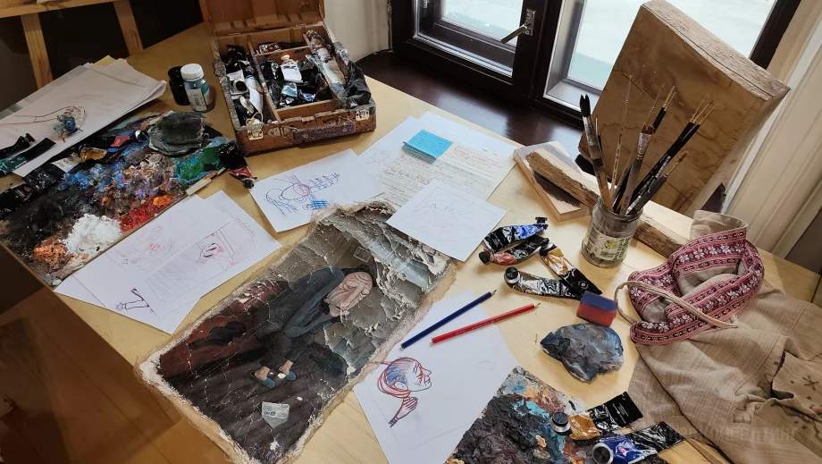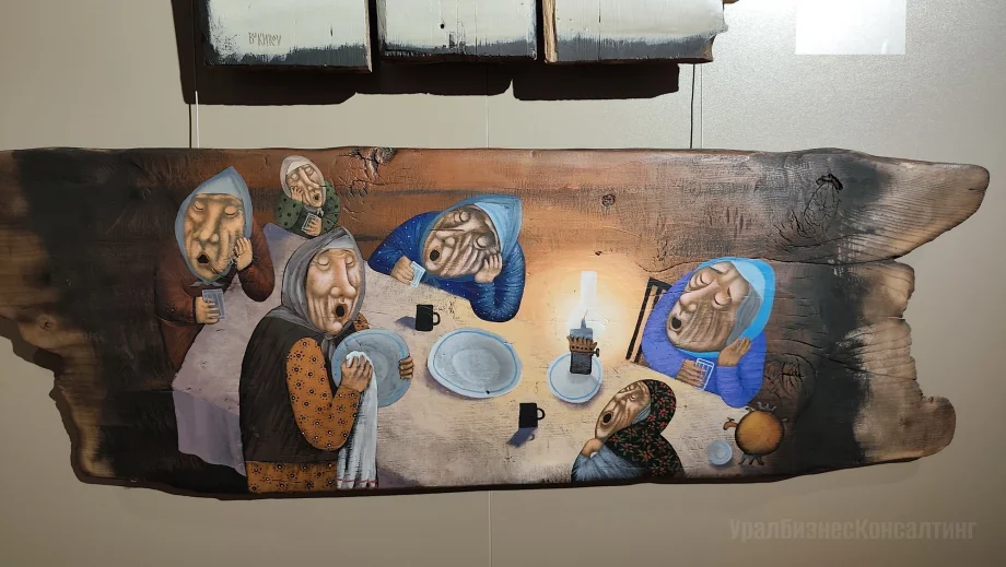 «Старые доски — это очень интересный материал, который буквально сам подсказывает сюжет. Я работаю с досками летом и только на улице. А летом по ночам у нас поют птицы. И вот доски очищены огнем, омыты водой, а лучше дождем, а еще лучше, если будет гроза. И опеты птицами. В этом есть какой-то дополнительный энергетический заряд», — рассказывает художник Дмитрий Бухров.