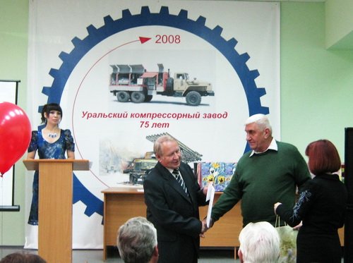 УрБК, Екатеринбург, 08.05.2009. Работники ОАО «Первоуральский новотрубный завод» награждены почетными званиями и почетными грамотами. Три человека удостоены звания «Почетный металлург», один — звания «Почетный машиностроитель», более 20 награждены грамотами Министерства промышленности и торговли РФ.