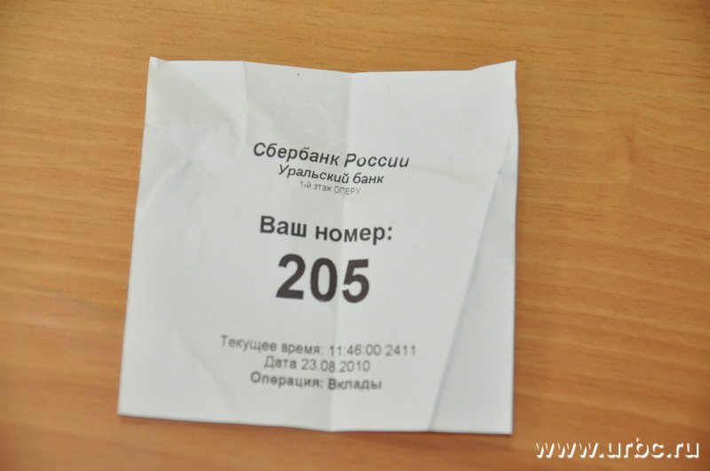 В момент, когда корреспондент УрБК посетил головной офис Сбербанка в Екатеринбурге, он получил номер 205. На прием к специалисту приглашали в это время клиента № 185. Проконсультироваться у дежурного администратора тоже оказалось крайне проблематично — таковых желающих еще до вступления в очередь нашлось не менее десятка. Поэтому определять, к какому из семи предложенных тематических разделов относится интересующий вопрос, пришлось самостоятельно. В итоге, когда подошло время, выяснилось, что специалист выбран ошибочно, — пришлось вновь вернуться в конец очереди и провести еще полчаса в томительном ожидании.