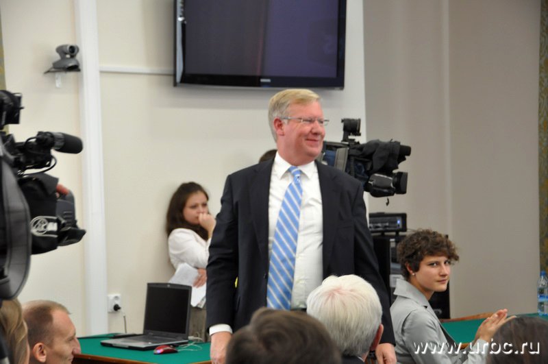 Посол США в России Джон Байерли побывал в гостях у ветеранов и студентов Екатеринбурга. В разговоре с молодежью дипломат рассказал о вкладе американцев в творчество Михаила Булгакова, планах на пост президента США, подозрительности в отношении россиян и выразил свой взгляд на проблему признания независимости Абхазии и Северной Осетии.