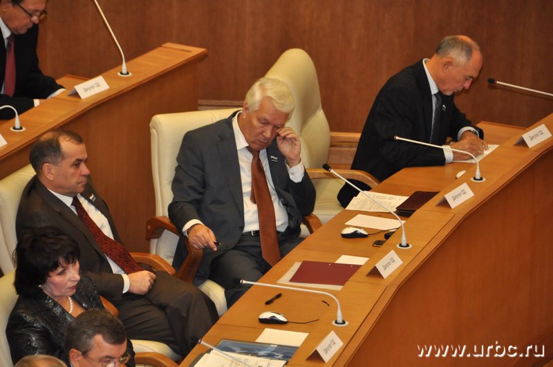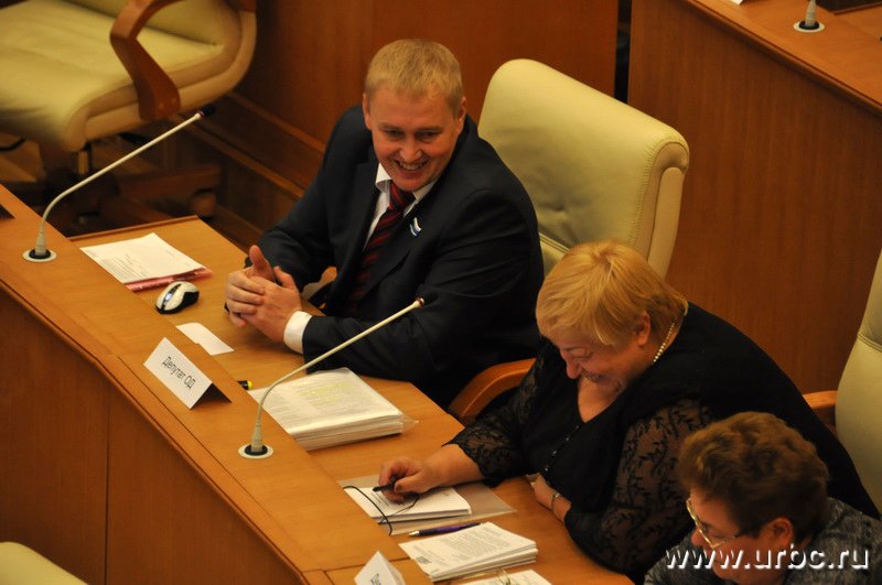 Депутатам Облдумы пришлось сегодня потесниться в зале заседаний и занять непривычные места. Андрей Альшевских пересел поближе к веселым дамам