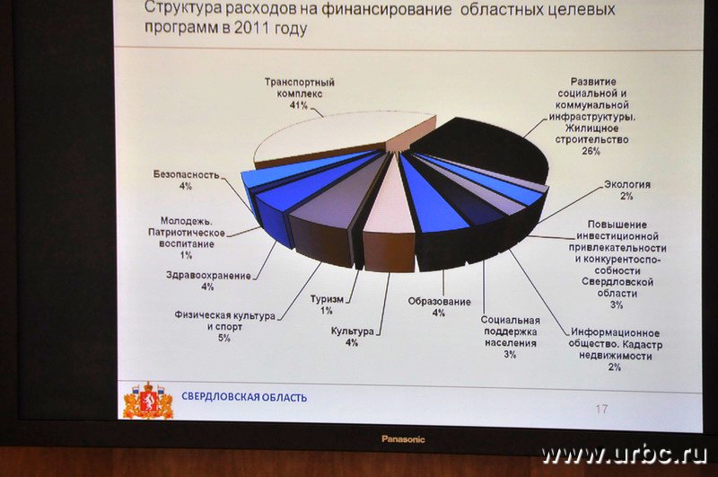 «В бюджете 2010 года было 48 программ, из которых половина не финансируется. Сегодня мы запланировали всего 24 программы, они очень затратные — некоторые имеют стоимость более 2 млрд. рублей, — но зато все обеспечены финансированием. Например, программа дошкольных детских учреждений составляет 2,168 млрд. рублей. Мы ее приняли в полном объеме. Программу по развитию духовного центра в Свердловской области мы тоже приняли. Все это будет финансироваться в следующем году», — объясняет рост «целевых расходов» премьер.