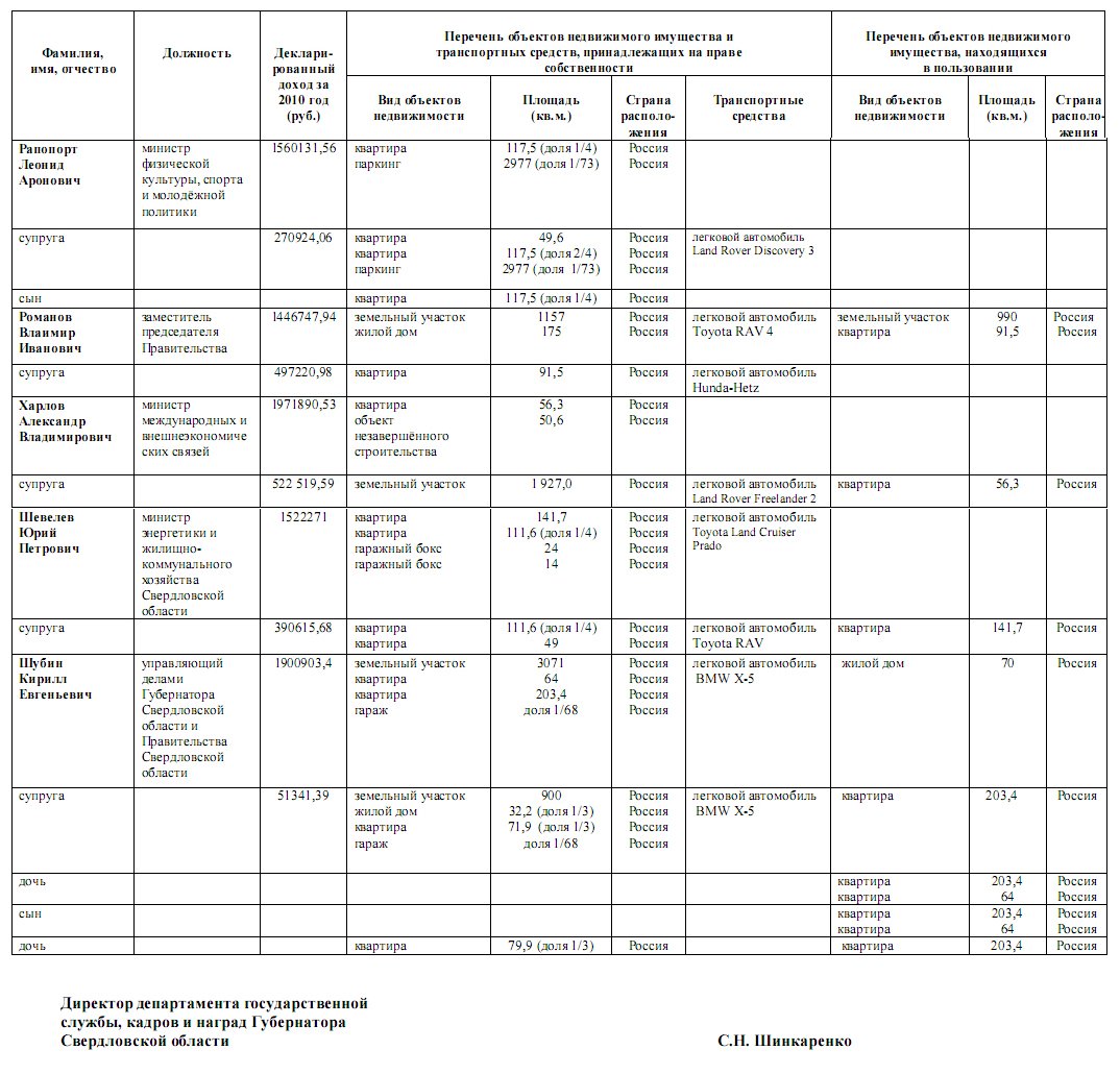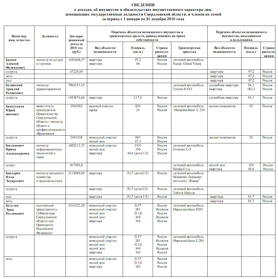 Свердловские чиновники обнародовали свои доходы за минувший год. Соответствующая информация представлена на официальном сайте правительства. Самым богатым оказался министр здравоохранения Аркадий Белявский.Судя по опубликованным сведениям, председатель регионального правительства Анатолий Гредин за минувший год заработал чуть менее 3 млн. рублей. Согласно представленным данным, в собственности у областного премьера числится две квартиры площадью 160,5 и 236,8 кв. метров, садовый участок, гараж и машиноместо. При этом ни у Анатолия Гредина, ни у его супруги транспортного средства в собственности нет.